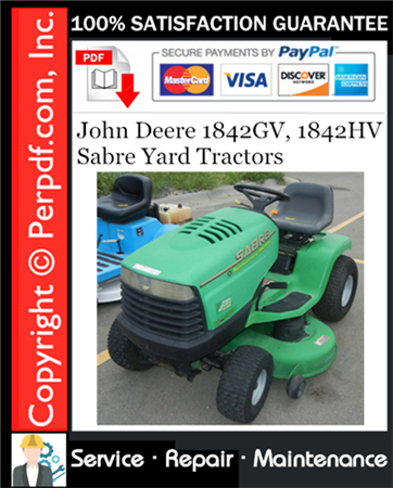 Original Factory John Deere 1842GV, 1842HV Sabre Yard Tractors Manual is a Complete Informational Book. It will give you everything you need to do the job. Save time and money by DO-IT-YOURSELF!
