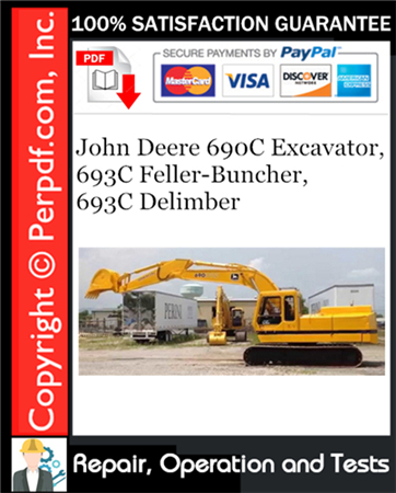 This Original Factory Manual Includes Detailed Repair, Operation and Tests Information for the John Deere 690C Excavator, 693C Feller-Buncher, 693C Delimber. It contains guidance on operation and tests information, repair, diagnostics, special instructions for repair and maintenance, instructions for installation and adjustment, assembly and disassembly instructions, step by step instructions, technical specifications, illustrations, detailed schematics and diagrams, troubleshoot and any additional information for John Deere 690C Excavator, 693C Feller-Buncher, 693C Delimber.